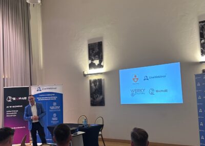 Grzegorz Werkowski mówił o marketingu przy małym budżecie, Maciej Biegajewski – o tworzeniu angażujących treści z pomocą AI, a Adrian Żebrowski – o automatyzacji bez kodowania.